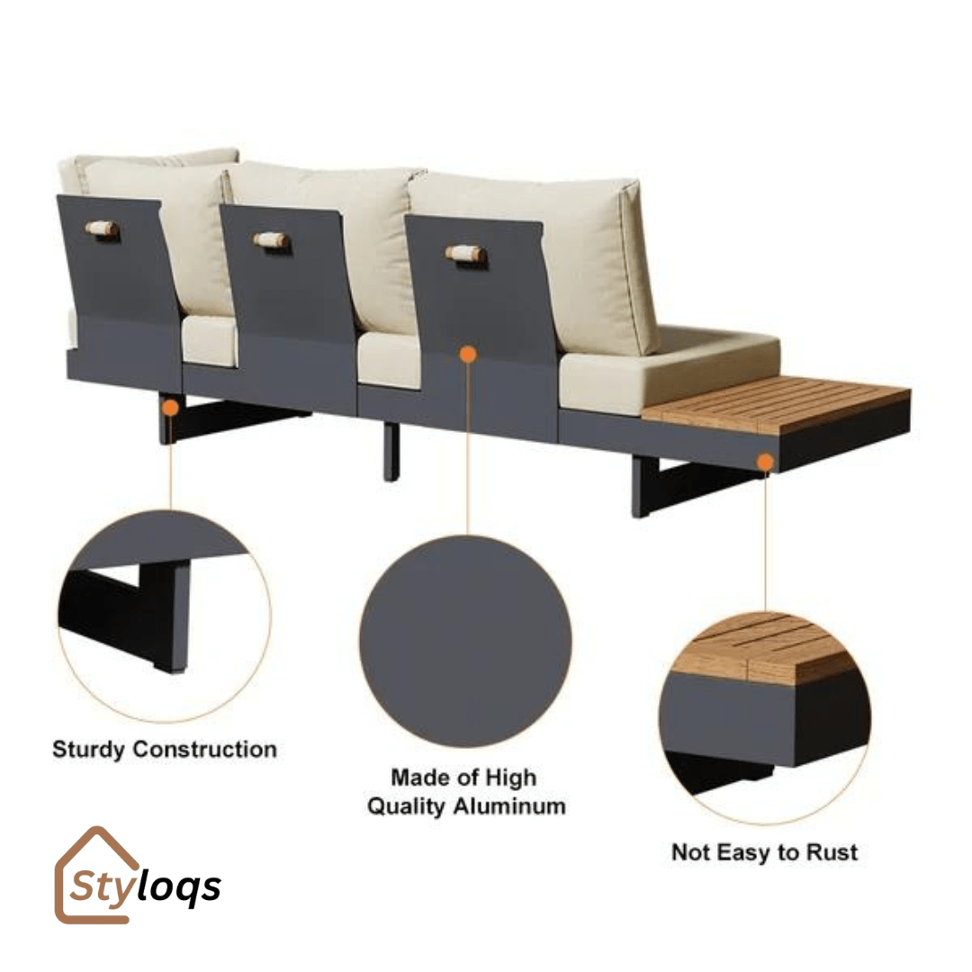 • Easy Maintenance: Designed for easy cleaning and maintenance, simply wipe down the surfaces with a damp cloth to keep your outdoor sofa set looking fresh and inviting.