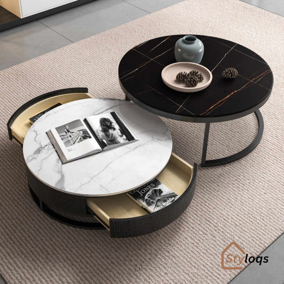 [Free shipping] Slate retractable TV cabinet, [Free shipping] Slate large and small combination round table, [Free shipping] Slate low coffee table, [Free shipping] Coffee table combination + retractable TV cabinet